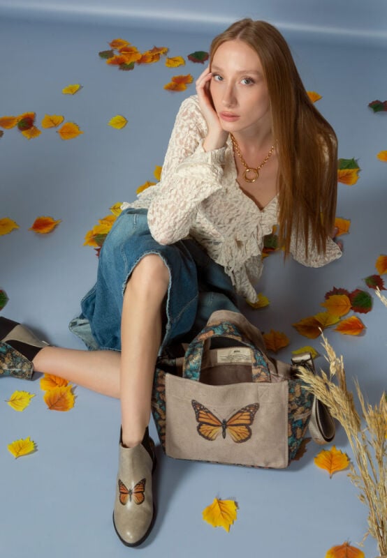 Moths and Butterflies Tasarım Kadın Vegan Krem Medium Tote Bag, doğadan ilham alan zarif desenleriyle şehir stiline romantik bir dokunuş kazandırır. Krem tonlarının sade ve zarif görünümü, DOGO’nun sanatı giyilebilir hale getiren özgün tarzını yansıtır. Yüksek kaliteli vegan yapısı sayesinde hem dayanıklılık hem konfor sunan bu kadın tote bag, günlük kullanım için ideal boyutuyla öne çıkar. Renkli detaylar ve modern tasarımıyla her kombine uyum sağlayan bu çanta, hem şık hem fonksiyonel bir alternatif oluşturur. %100 hayvan dostu üretimiyle etik modayı destekleyen Moths and Butterflies vegan tote bag, zarafet ve doğallığı bir araya getirir.