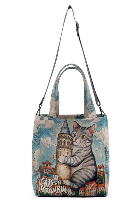 Galata Cat Tote Bag, İstanbul’un ikonik Galata Kulesi ve sevimli kedilerinden ilham alan şık ve eğlenceli bir kanvas çantadır. Kadın çantası ya da omuz çantası olarak rahatlıkla kullanılabilen bu model, İstanbul’un ruhunu stilinize taşır. %100 vegan malzemelerle üretilen Galata Cat Tote Bag, dayanıklı kanvas yapısı ve kaliteli işçiliği sayesinde uzun ömürlü kullanım sunar. Kedili ve Galata Kulesi detaylarıyla özgün bir tarz yaratarak dikkat çeker. Geniş iç hacmi, günlük eşyalarınızı düzenli ve pratik bir şekilde taşımanıza olanak tanır. Şıklığı ve işlevselliği bir arada sunan bu model, İstanbul tutkunları için mükemmel bir seçenektir.