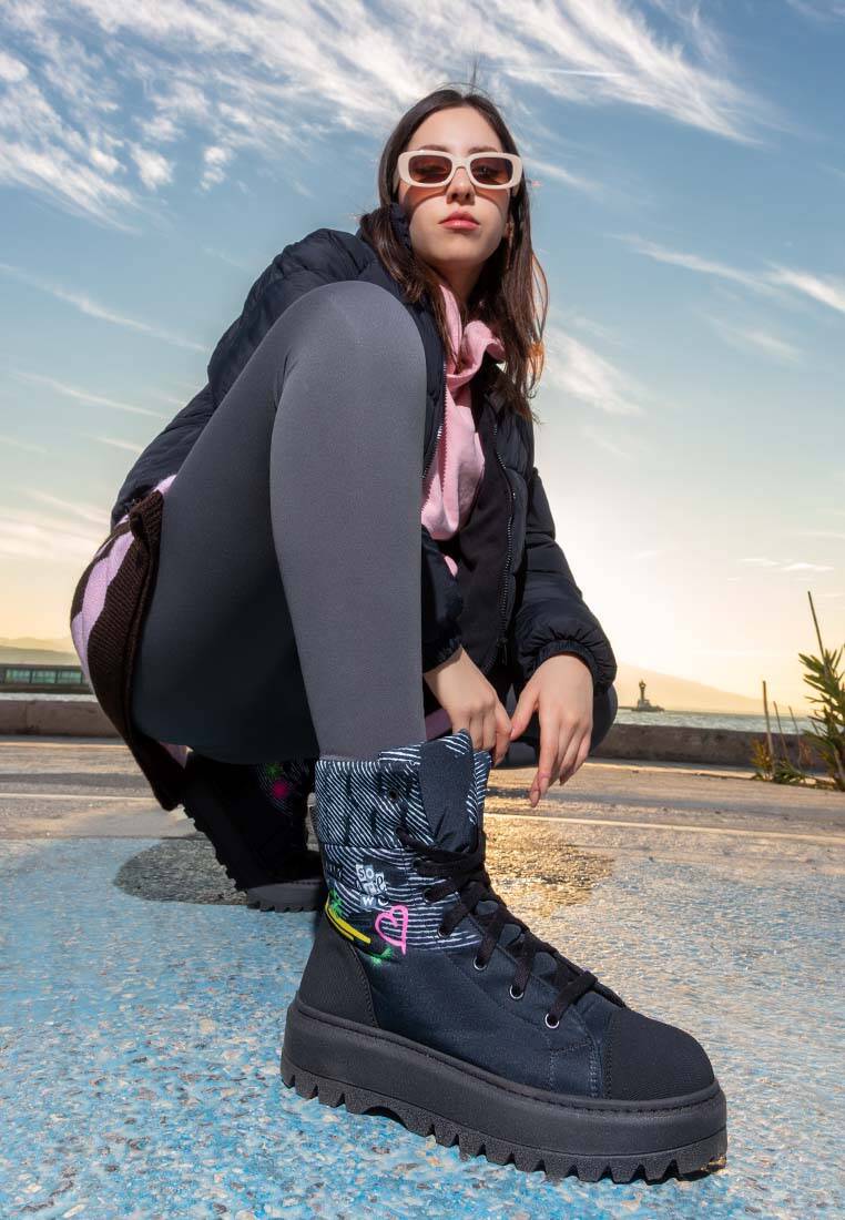 Kadın Vegan Siyah Uzun Bot - The Night is Still Young Tasarım
