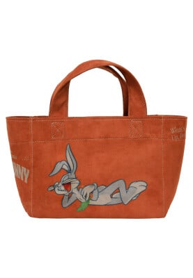 Kadın Vegan Turuncu Medium Tote Bag - Warner Bros Bugs Bunny Chill Bunny Tasarım