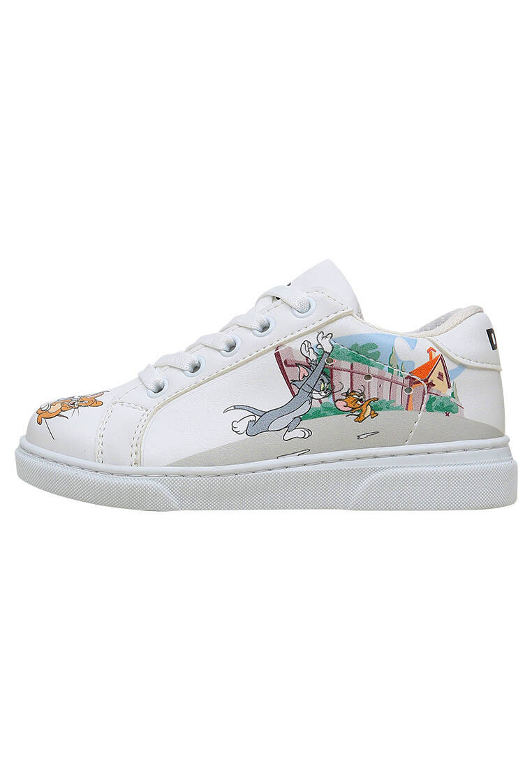 Unisex Çocuk Vegan Deri Beyaz Sneakers - Warner Bros Tom ve Jerry Together-and-Apart Tasarım