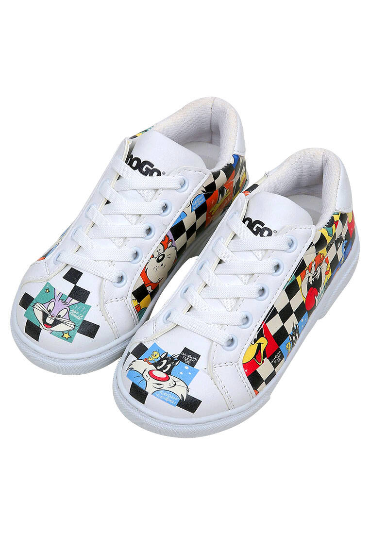 Enfants Cuir Vegan Blanc Baskets - Warner Bros You're Despicable Motif