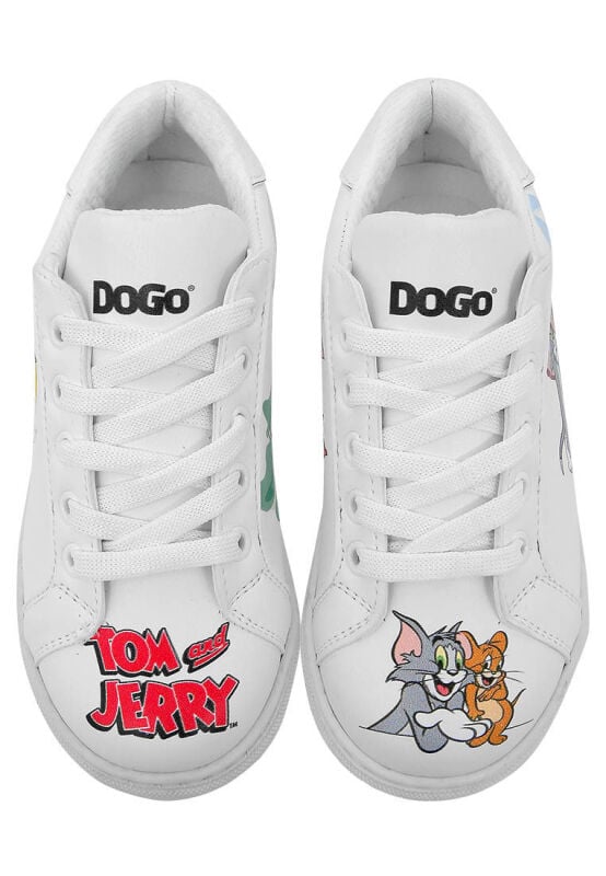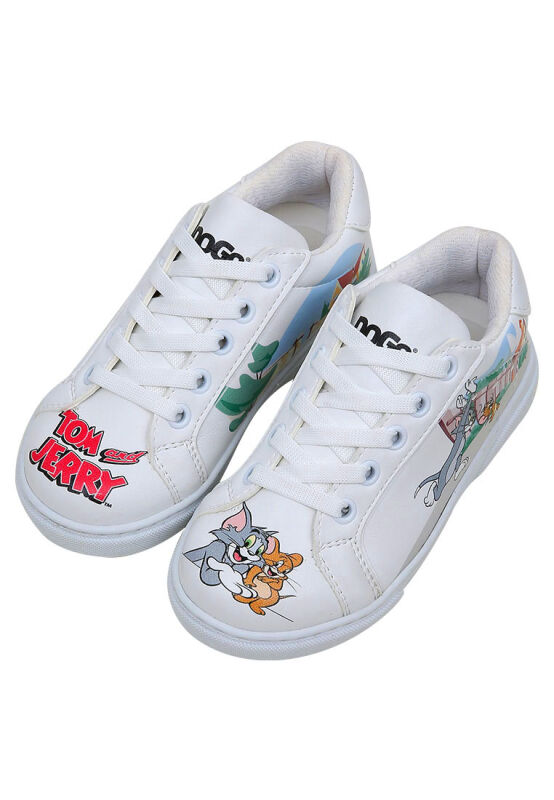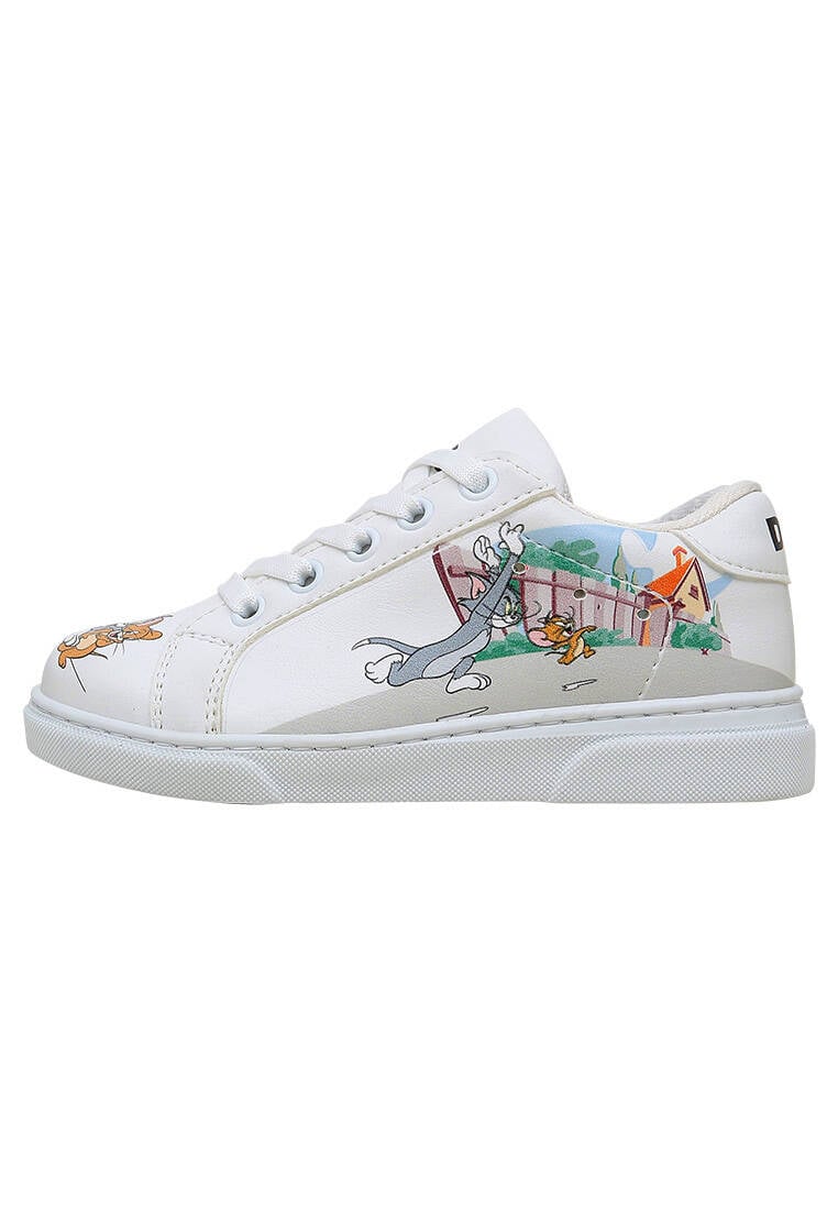 Enfants Cuir Vegan Blanc Baskets - Warner Bros Tom et Jerry Together-and-Apart Motif