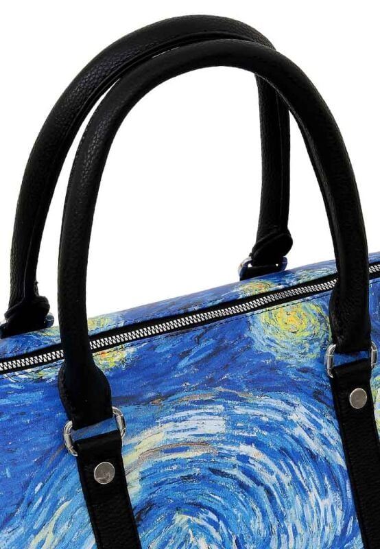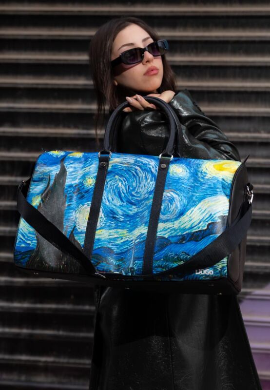 Unisex Vegan Deri Çok Renkli Seyahat Çantası – Vincent van Gogh Starry Night Tasarım, sanattan ilham alan özgün deseniyle seyahat stiline güçlü bir karakter kazandırır. Unisex vegan deri seyahat çantası formu, hem kadın hem erkek kullanımına uygun yapısıyla fonksiyonellik sunar. Dayanıklı vegan deri malzemeden üretilen bu deri çanta, çevreye duyarlı ve hayvan dostu bir tercih arayanlar için idealdir.Çok renkli deri seyahat çantası tasarımı, ilhamını Vincent van Gogh’un Starry Night eserinden alarak klasik modellerden ayrışır. Geniş iç hacmi; hafta sonu kaçamakları, kısa seyahatler ve günlük kullanım için uygundur. Şıklık, dayanıklılık ve sanatsallığı bir arada sunan bu seyahat çantası, fonksiyonel yapısıyla stil ve konforu buluşturur.