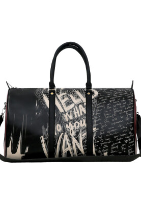 Unisex Vegan Leather Black Duffle Bag – What Do You Want Art Design makes a bold statement with its artistic and modern look. Crafted from 100% vegan leather, this eco-friendly duffle bag is durable, lightweight, and designed for everyday elegance. Its roomy interior allows it to function as a travel duffle bag, carry-on bag, or cabin suitcase. The deep black tone complements every style, while art-inspired details add character.