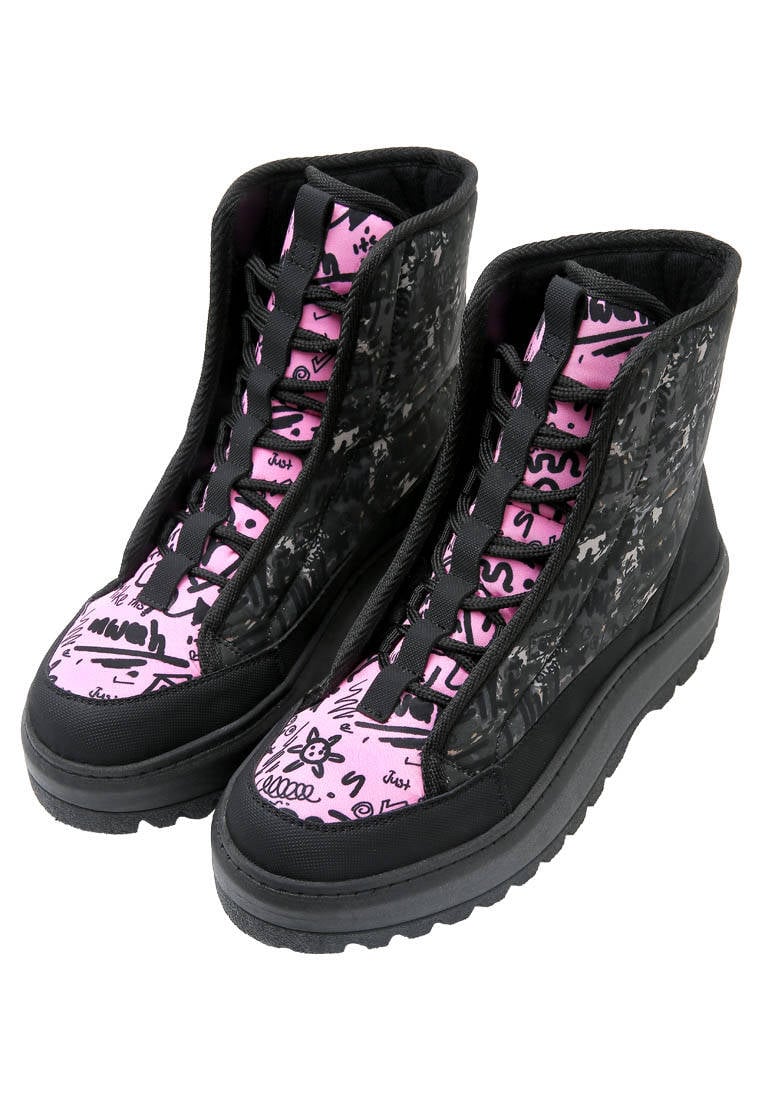 Women’s Vegan Black Long Boots – Doodle Camo Design bring a modern edge to urban style with their distinctive patterns and powerful stance. The black ankle-boot structure combined with a long boot silhouette creates a look that is both dynamic and bold. Crafted from 100% vegan materials, this women’s boot reflects an animal-friendly and eco-conscious fashion approach. Suitable for everyday outfits and city life alike, these vegan women’s boots stand out in the women’s boot category with their comfortable sole and eye-catching design.