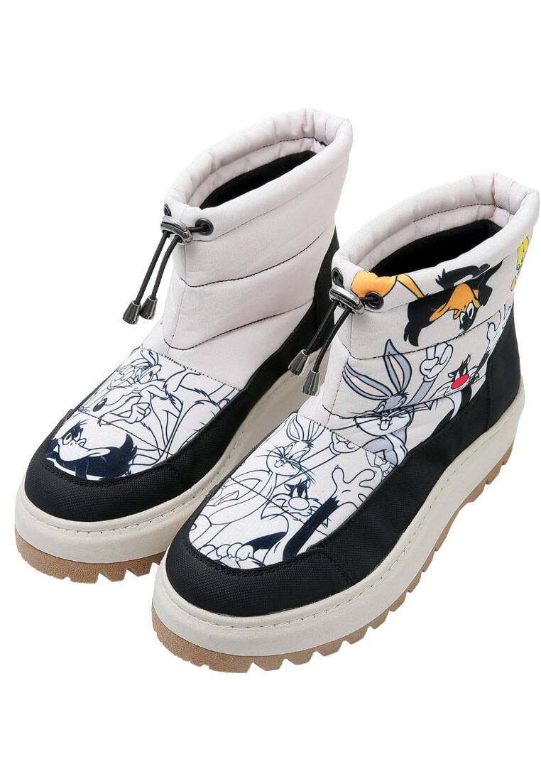 Women’s vegan cream long boots with the Looney Tunes Chasing Tunes design combine energetic style and comfort in one. The ankle boot form, animated with playful Looney Tunes details, pairs with a long boot silhouette to add a unique touch to urban style. Made from 100% vegan materials, this women’s boot reflects an animal-friendly and environmentally conscious fashion approach. Easy to match with various outfits thanks to its cream tone, the vegan cream women’s boot is a timeless and fun alternative for everyday wear and weekend styles.