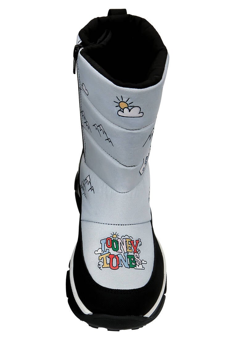 Women Vegan Grey Boots - Warner Bros Looney Tunes Ski Club Design