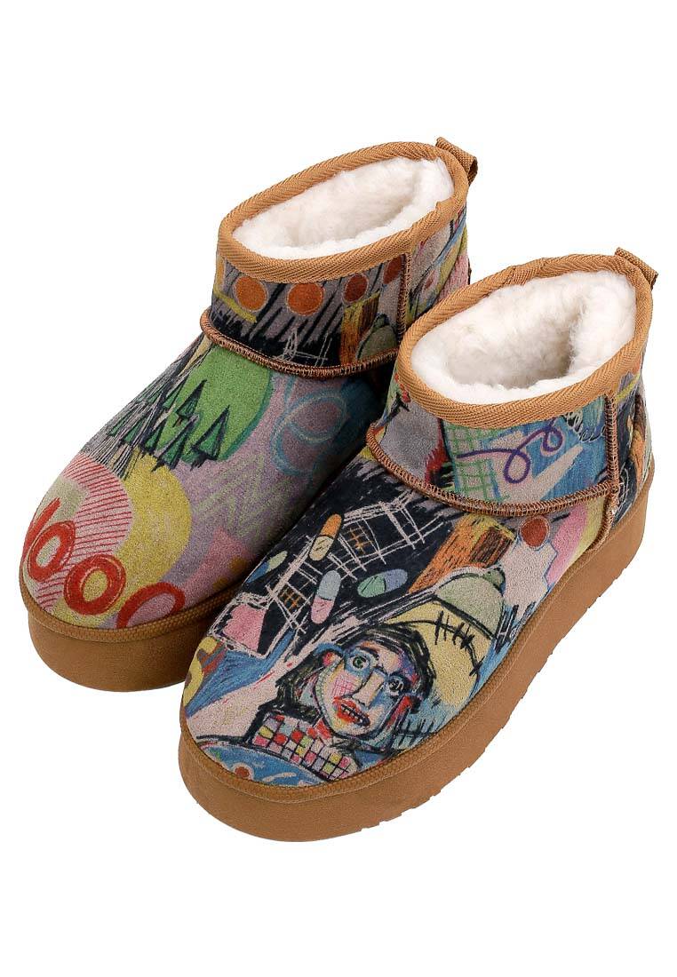 Women Vegan Leather Multicolor Plush Lined Ankle Boots - Live and Save Design