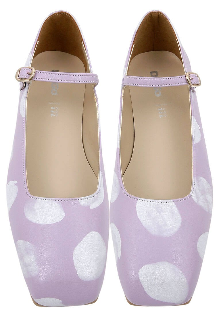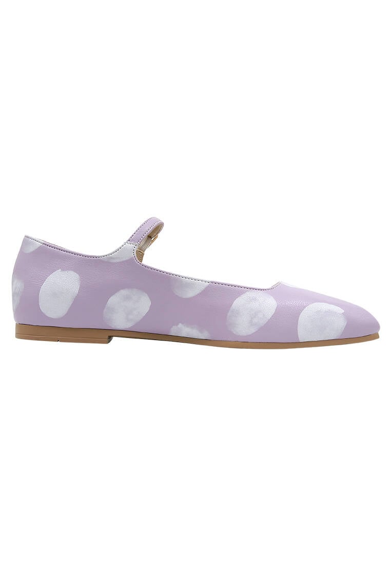 Women Vegan Leather Lilac Ballerinas - Brush Dots White Design