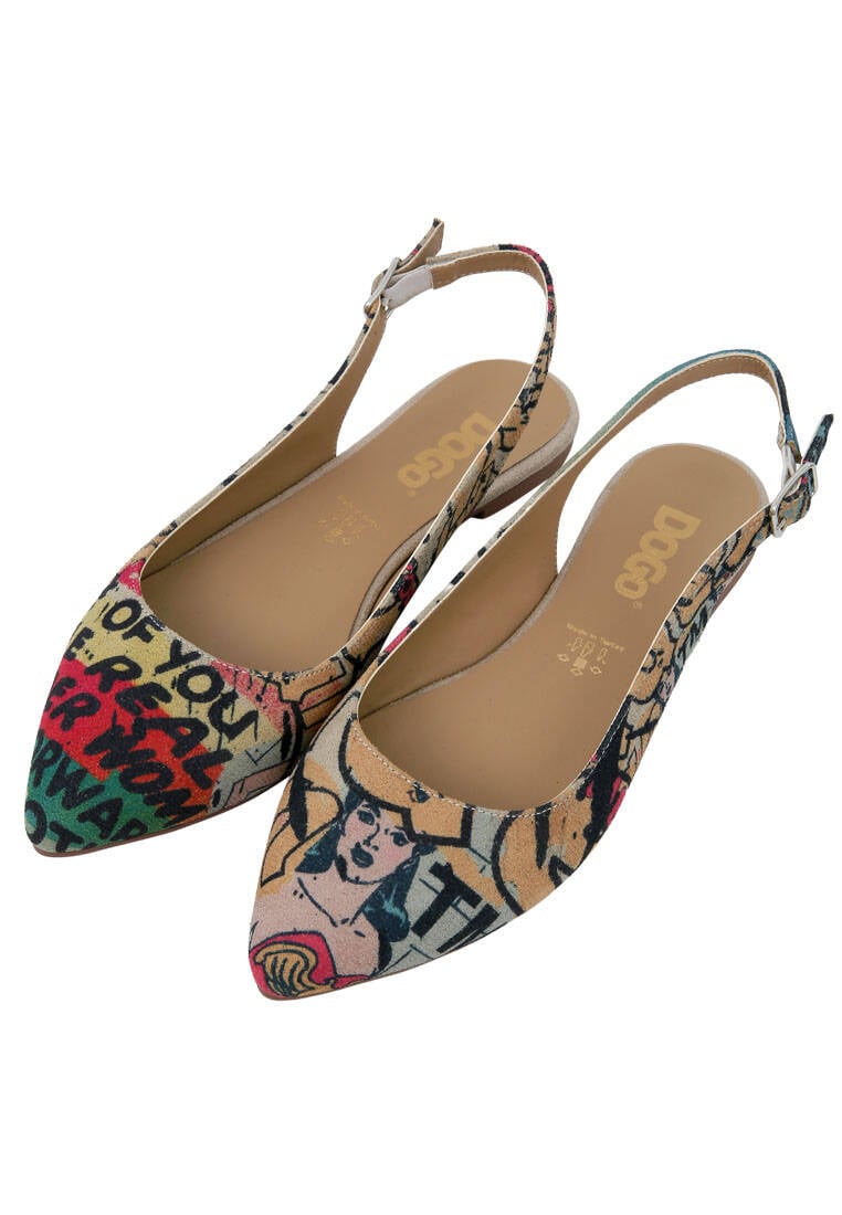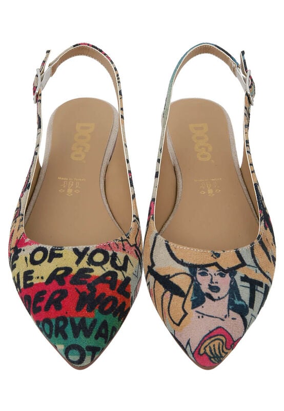 Step into a world of wonder and embrace the power of style with Women Glam model Wonder Woman Design Multicolor Flat Shoes. Crafted from high-quality vegan leather, these shoes combine fashion and sustainability in perfect harmony. The eye-catching multicolor design, inspired by the iconic Wonder Woman from Warner Bros, adds a touch of superhero charm to your every step. Whether you're attending a casual outing or a special event, these shoes are the epitome of style and empowerment. Unleash your inner superhero with extraordinary Wonder Woman-inspired flat shoes.