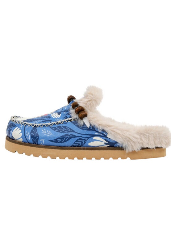 Women Vegan Leather Blue Plush Lined Slippers - Bunny Bloom Design