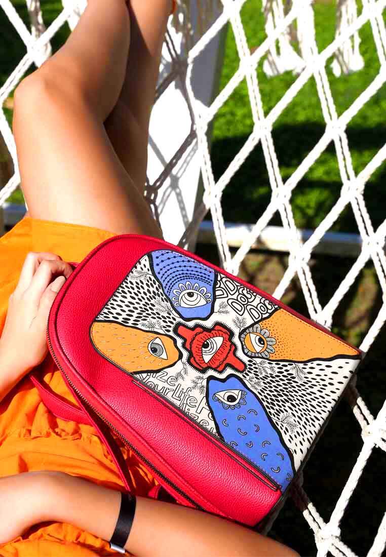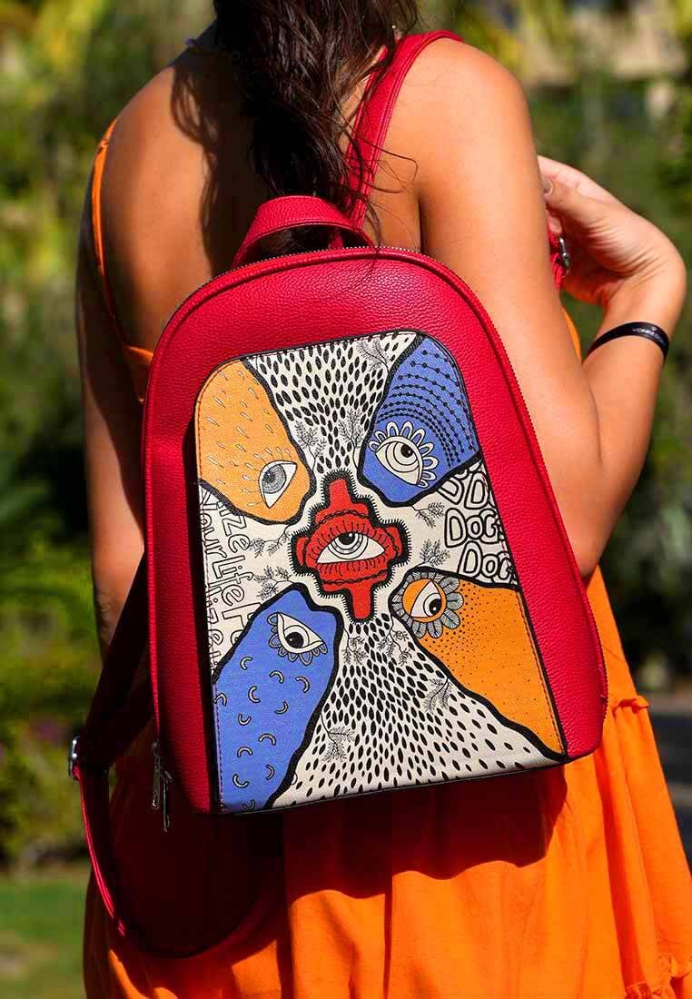A stylish and practical backpack for the fast-paced city life! Women Vegan Leather Red Backpack – Center View Design features a roomy interior and an ergonomic design, allowing you to carry all your essentials with ease. Crafted from 100% vegan materials, this eco-conscious backpack not only makes a fashion statement but also blends effortlessly into your everyday wardrobe. Choose it for yourself or gift a functional yet stylish backpack to someone special!
