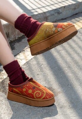 Women’s Vegan Red Slippers Shine Design combine comfort and elegance with their thick sole structure and modern slipper form. Standing out with their vibrant red color, these red vegan slippers add an energetic touch to everyday outfits. Made from 100% vegan materials, this women’s slipper model reflects an animal-friendly and environmentally conscious fashion approach. The thick sole provides all-day comfort while offering a stable and balanced feel, making it suitable for city life. With its modern design, comfort, and bold color, it stands out as a distinctive option in the women’s slipper category.