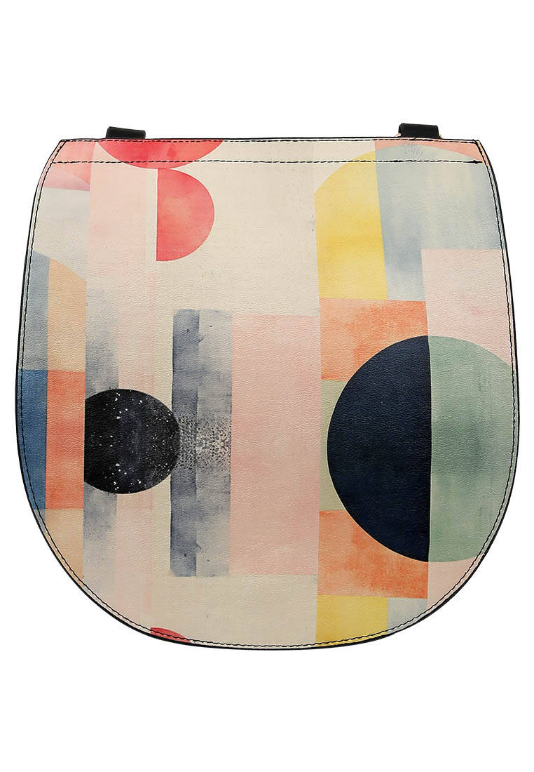 Women Vegan Leather Multicolor Shoulder Bag - Geometric Shapes Design