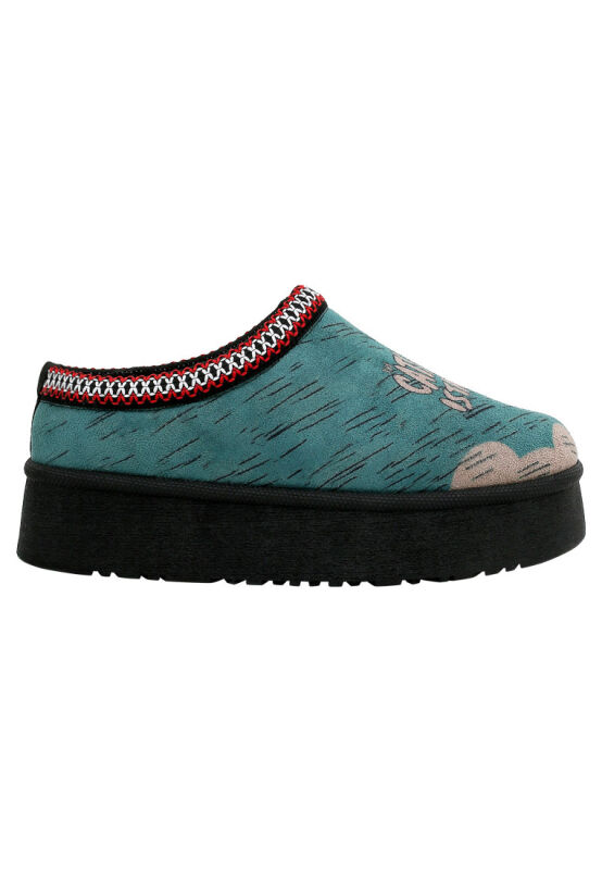 Women Vegan Leather Turquoise Plush Lined Slippers - Tram Nap Design