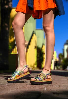 Chunky sole, maximum comfort! Women Vegan Leather Multicolor Wedge Sandals – Goose Bumps Design, a Gigi model, combines the ease of a wedge sandal with the sophistication of a design shoe. Made as a 100% vegan sandal, it’s an eco-friendly choice, while its lightweight and flexible sole ensures all-day comfort. Whether in the city, by the beach, or at a festival—this statement sandal is with you! Get one for yourself or add a stylish touch to your loved ones' look with a gift sandal!