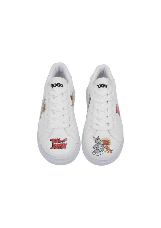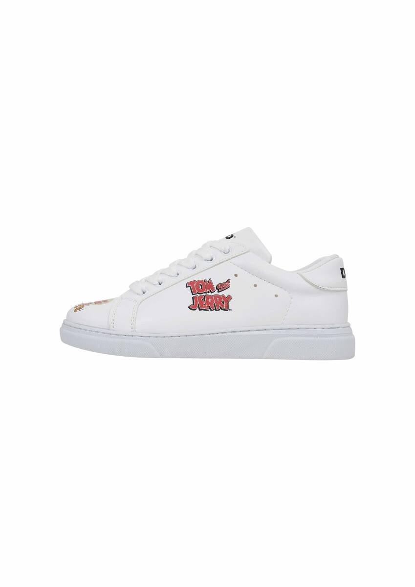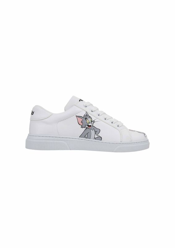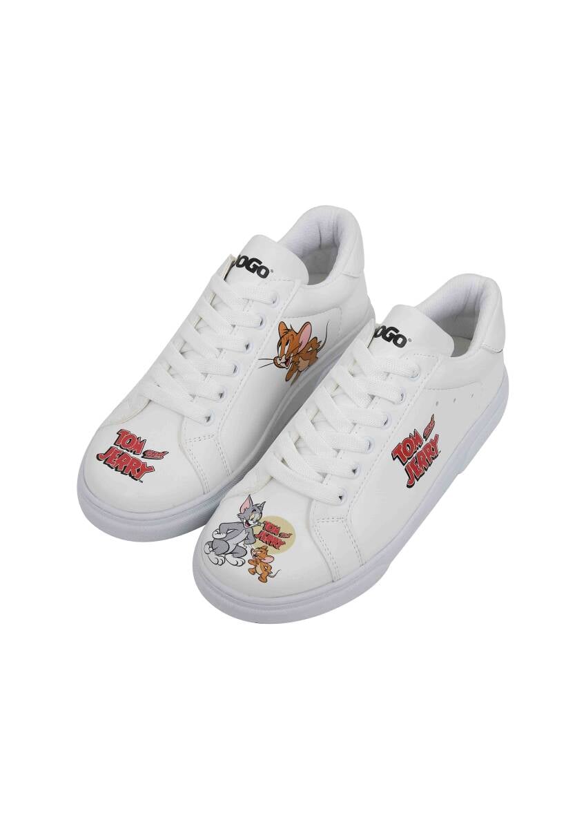 Women Vegan Leather White Sneakers - Warner Bros Tom ve Jerry Design