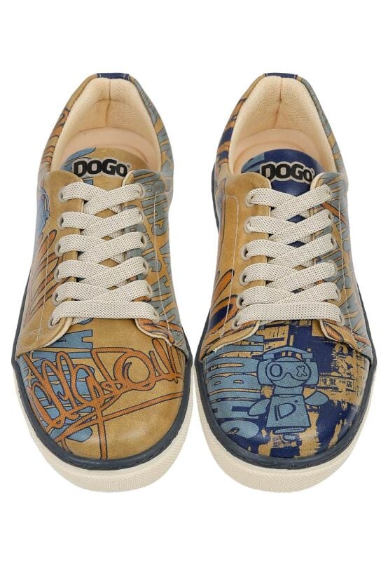 The Robo Shibuya Design Women’s Yellow Vegan Leather Sneakers bring a dynamic vibe to urban style with their futuristic lines and vibrant color. Reinterpreting the classic women’s sneaker silhouette with modern details, this model reflects DOGO’s unique approach to wearable art. Crafted from high-quality vegan leather, it offers both comfort and durability. Blending retro sneaker aesthetics with the striking energy of yellow, this design makes a bold statement in every step. Supporting ethical fashion through 100% animal-friendly production, the Robo Shibuya women’s sneakers are a standout choice for style-conscious women who embrace originality.
