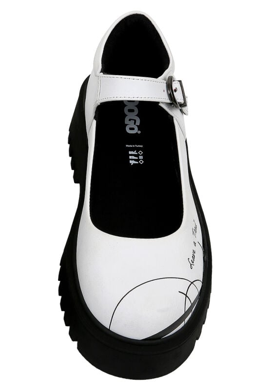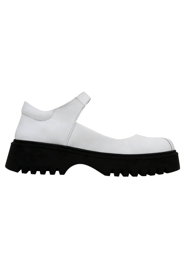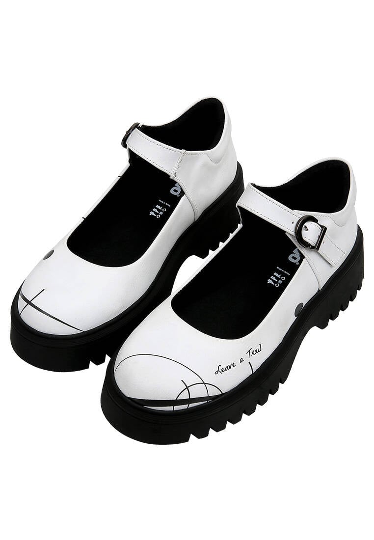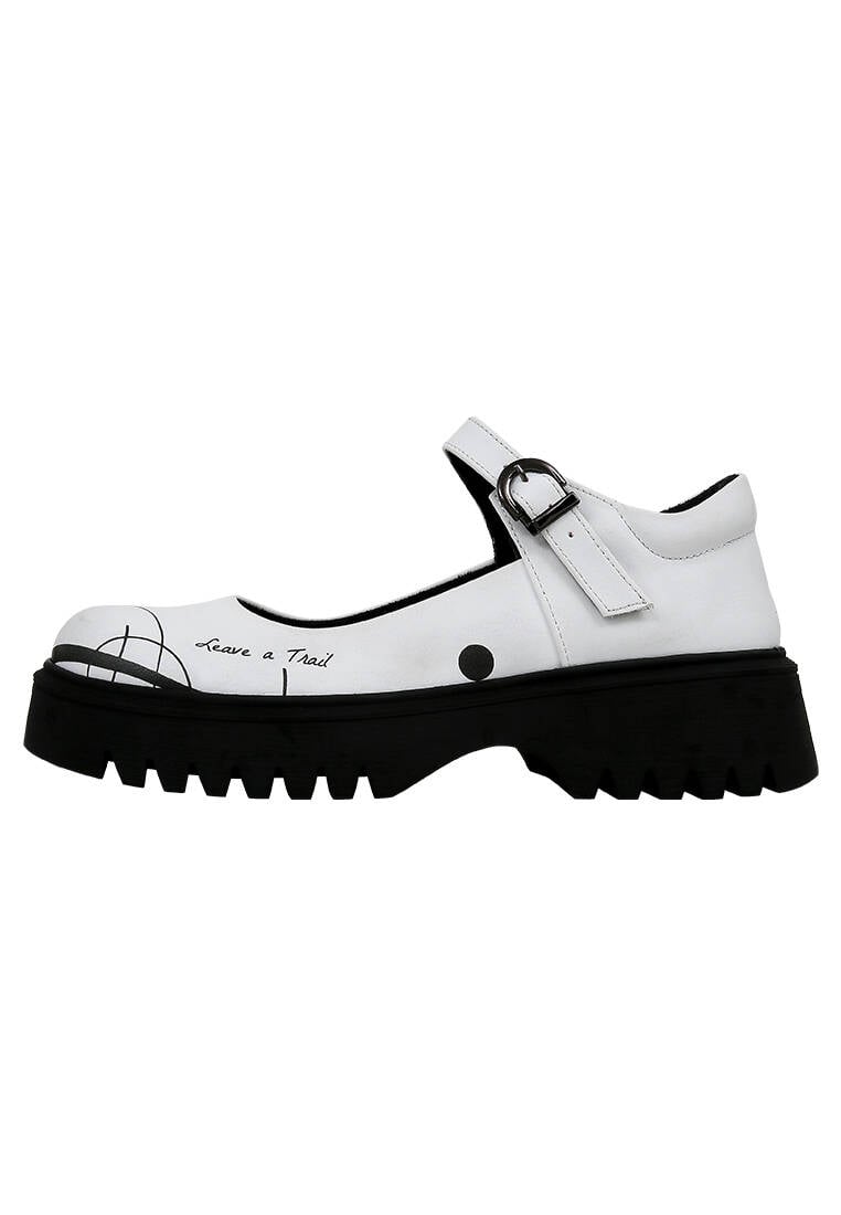 Merging the bold spirit of minimalism with the striking elegance of black-and-white contrast, the Leave a Trail design reimagines the Mary Jane loafer silhouette. Crafted from 100% vegan materials and featuring a modern chunky sole, this model brings a distinctive edge even to the simplest outfits. Its classic ankle strap detail is enhanced with a contemporary attitude. With its eco-conscious production approach, Leave a Trail helps you leave a mark—not just with your style, but with your values too.